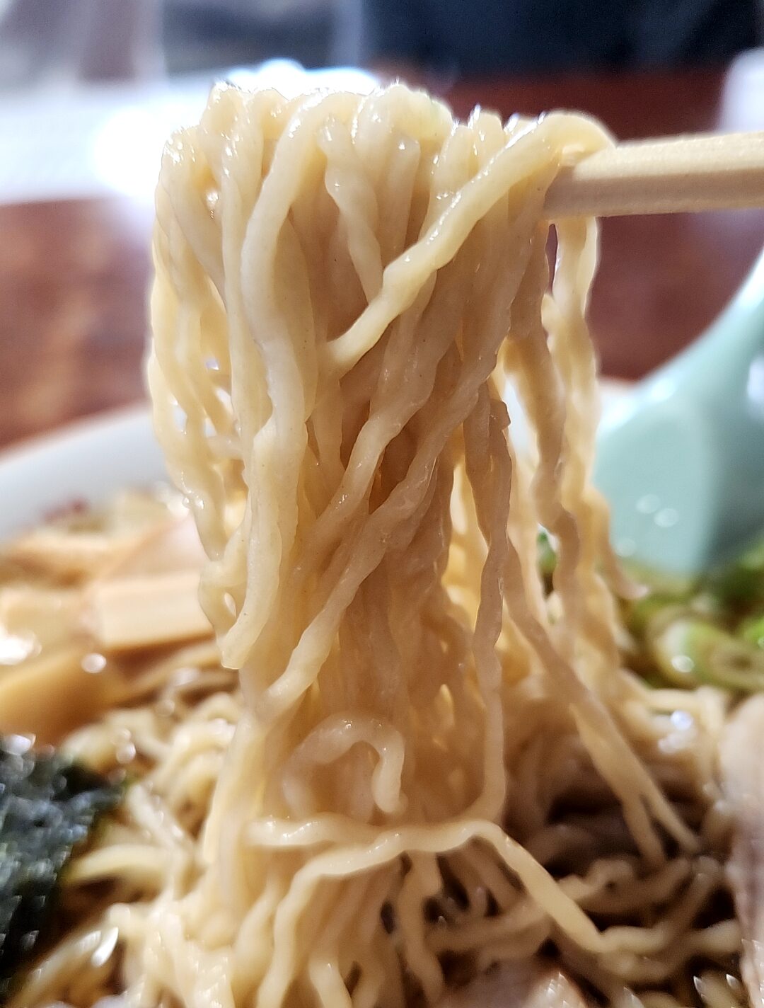 チャーシューは独特の弾力で、メンマはややコリコリ食感。ほか、ナルトも入り、全般的にバランスも良い印象だ