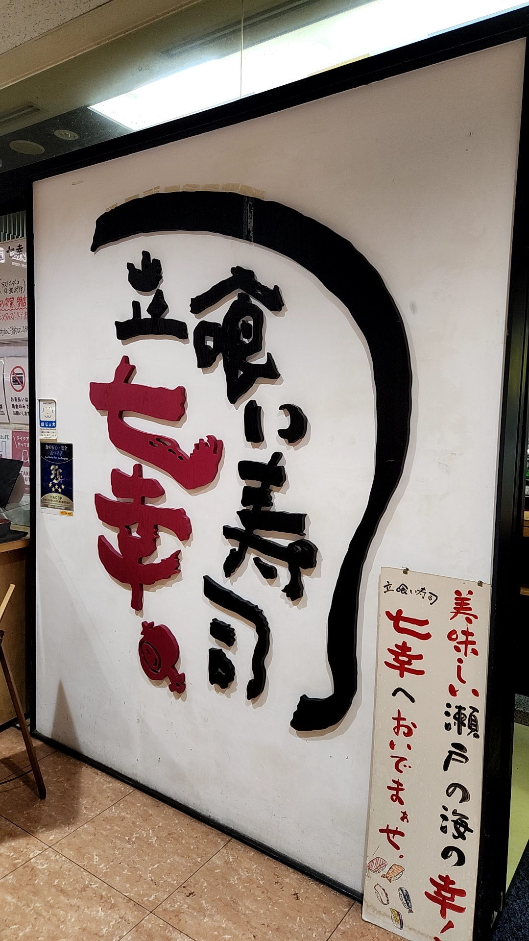 「七幸」は高松市内、川島本町というエリアにある居酒屋。こちらが展開する立ち食いのお寿司屋さんが「立喰い寿司七幸」だ。昼時ということもあり大変な人気、起票し、見た感じ空いていたのだが20分は待たされた。こりゃちんたら食べてられないね、後のお客さんに迷惑だ。セット握りが人気だが、単品であれこれ注文。総じて身が厚く、尚且つ鮮度が良いのか魚本体の旨味も値段にしてはしっかりしている。特に白身が美味く、恐らく地のものなんだろう。