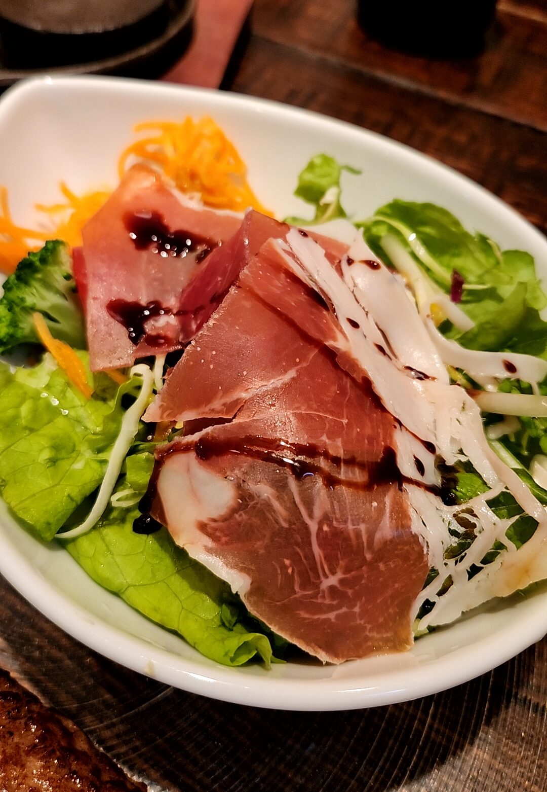 熟成生ハムサラダ。ボリュームがあるのも嬉しい。削りたてチーズのシーザーサラダもある。またお酒を飲みに行きたいなぁ・・・