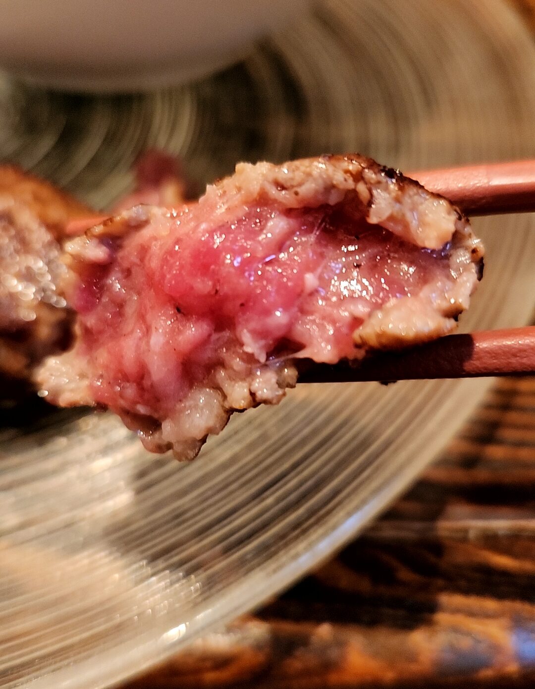 レア状態で提供されるが、無論、このまま食べるのはNG