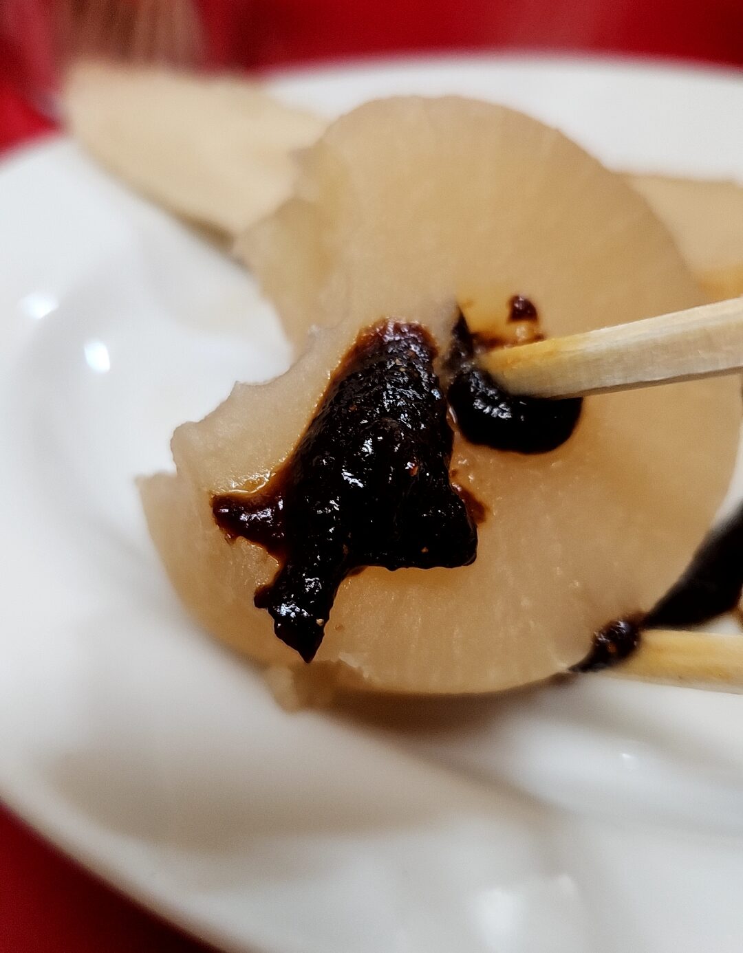卓上の赤味噌を塗りたぐって食べる。これはめちゃめちゃ美味しいです