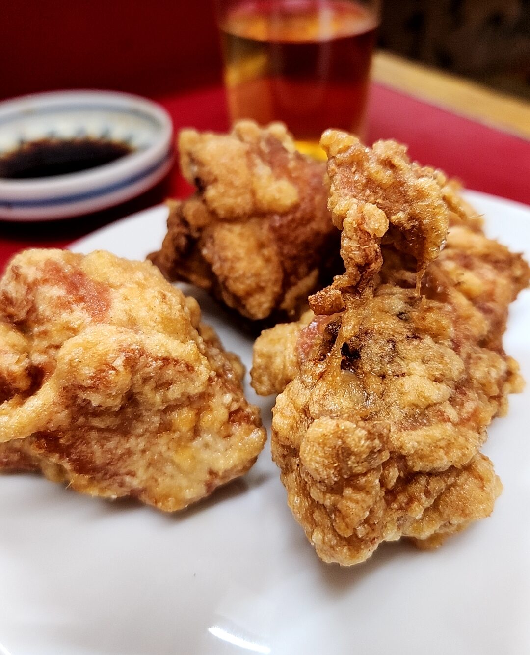からあげ小。骨入りで、これまた程よい揚がり具合。酒が進む