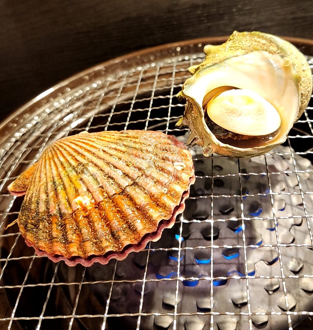 サザエ・桧扇貝。目の前のコンロでセルフで焼く
